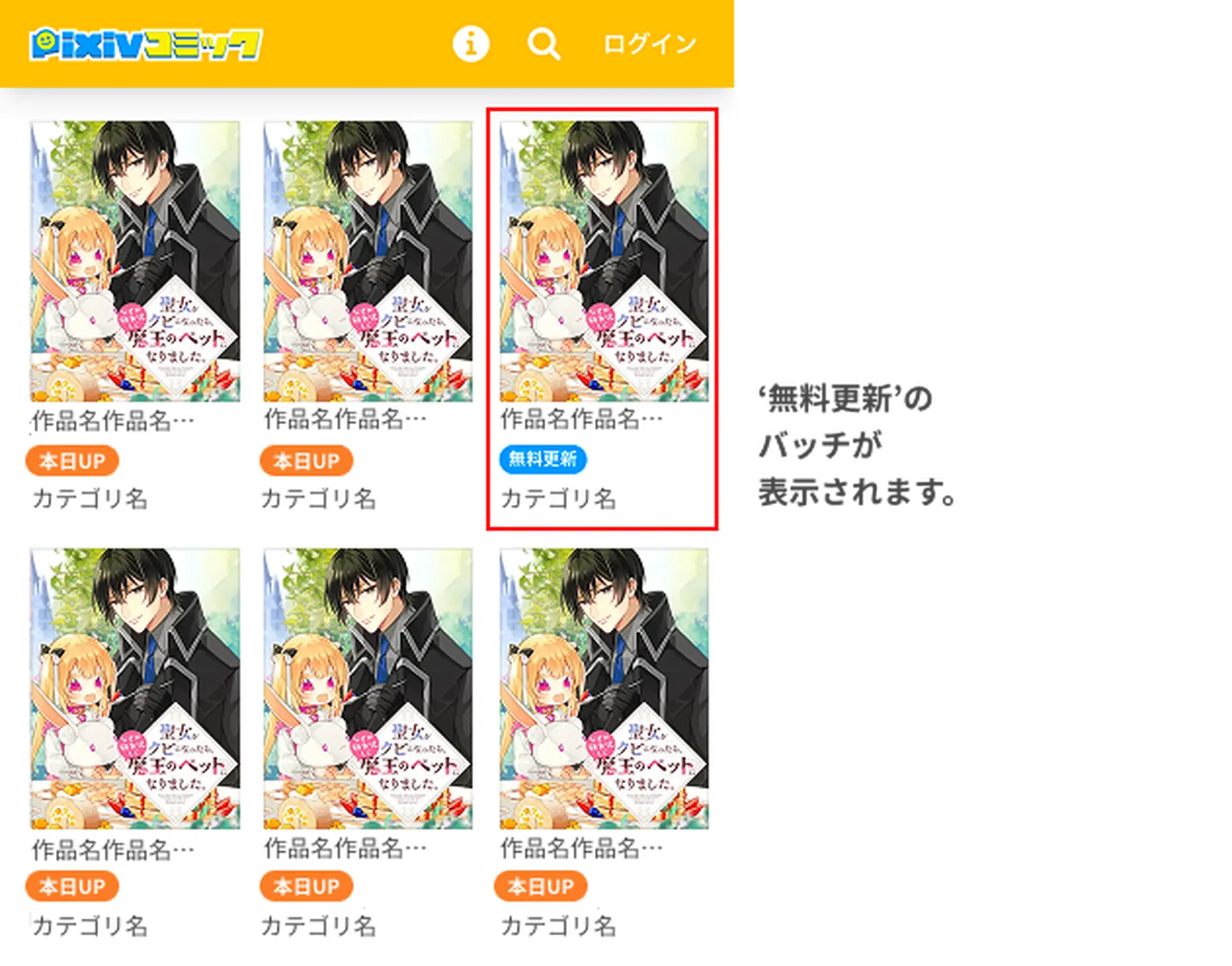 ・目印 :「無料更新」バッチが表示されます