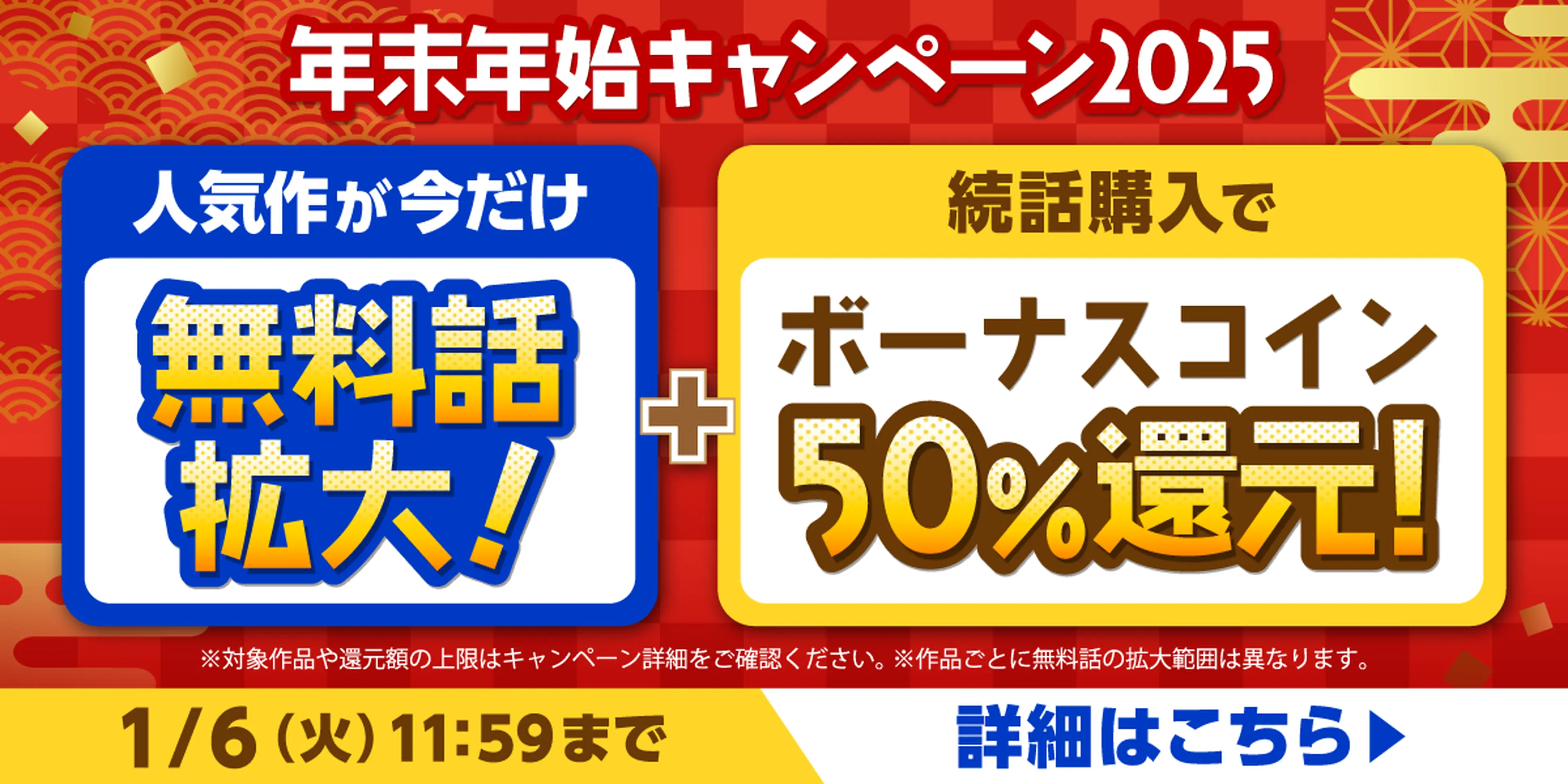 ③【人気作品のエピソードがお得に!】冒頭無料話拡大&ボーナスコイン50%還元キャンペーン