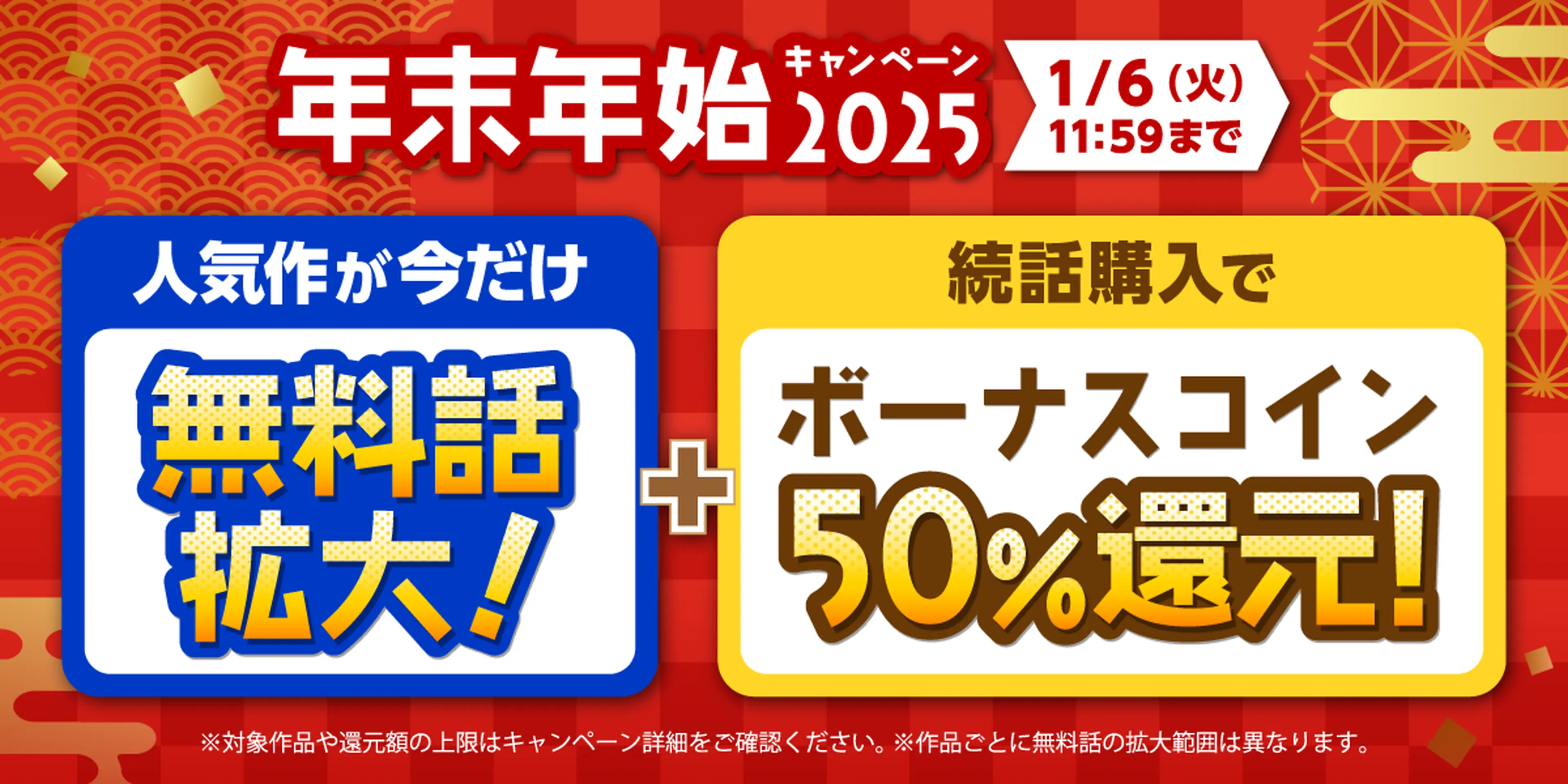 対象作品の続きの話を購入すると、後日ボーナスコインを50%還元🎉