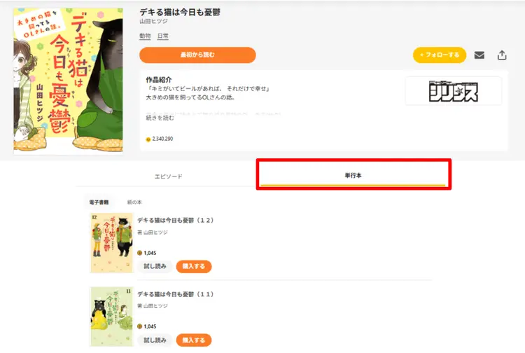 ・「単行本」タブに登録された単行本が対象です。同名タイトルであっても、「単行本」タブ(下図)に登録がなければ対象ではございません。