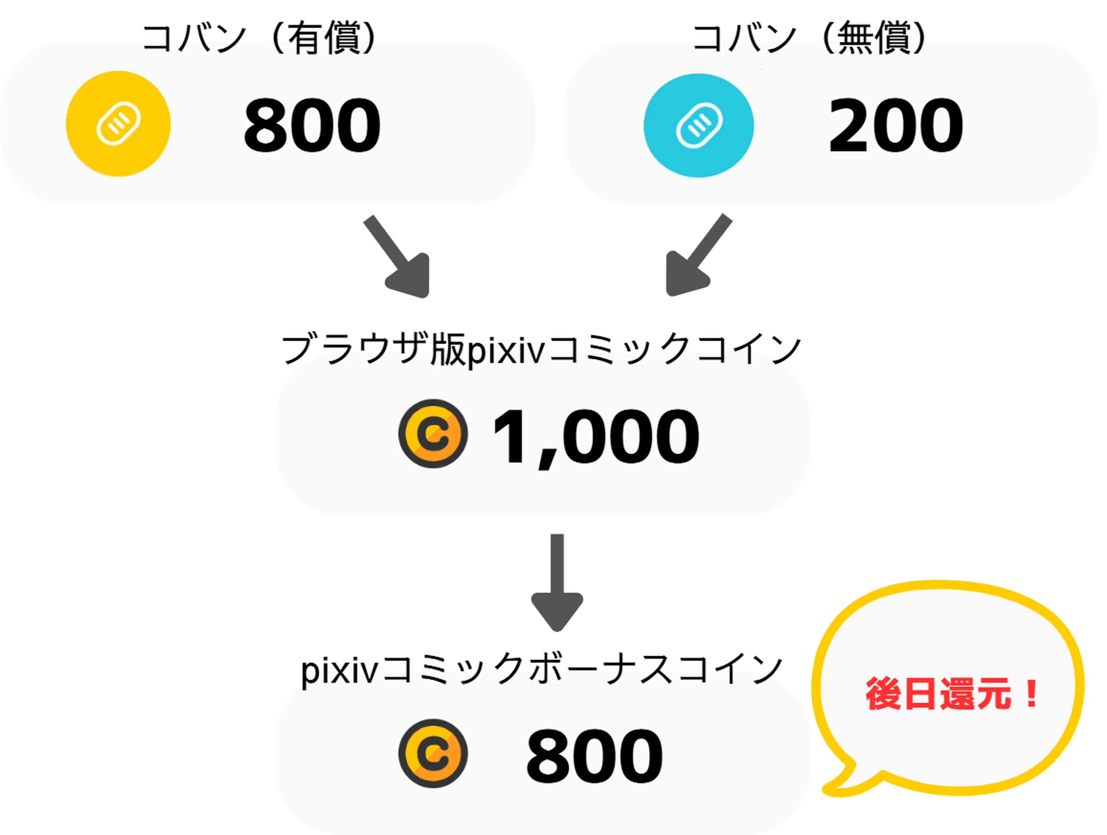 ※pixivコバン(有償)・(無償)が両方消費された場合、pixivコバン(無償)の額を差し引いて還元いたします