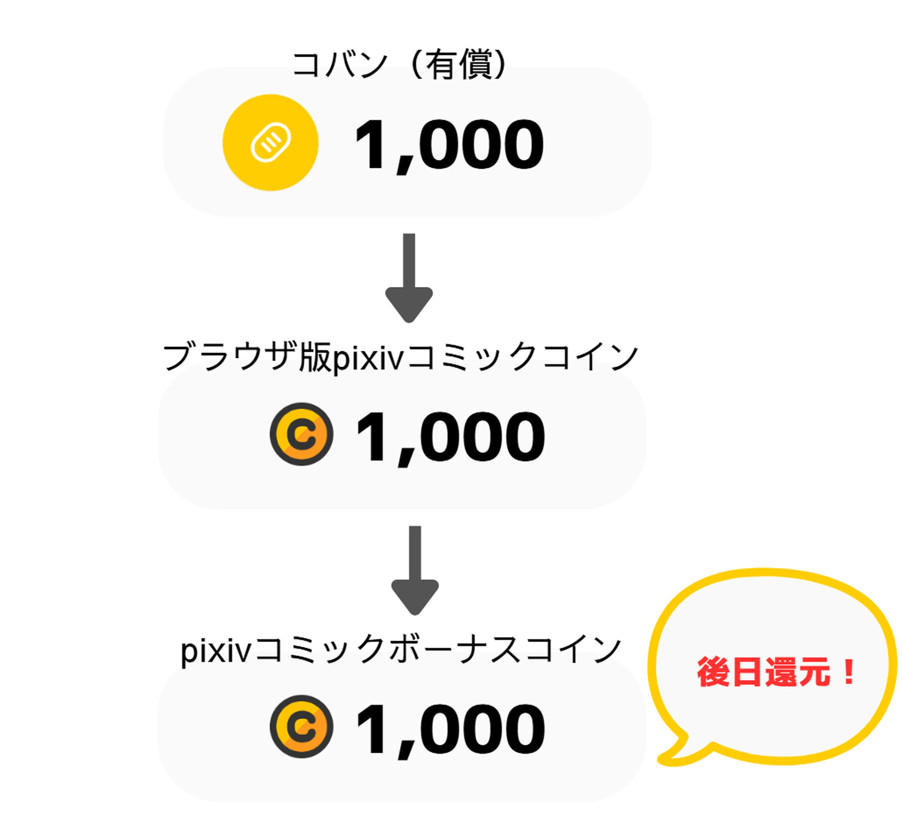 pixivコバン(有償)によるコインチャージ全額分を、ボーナスコインにて後日還元