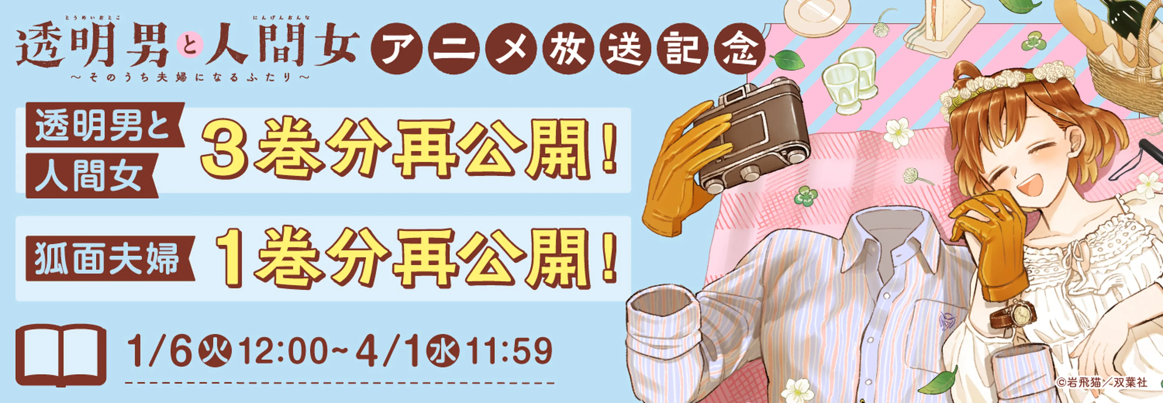 岩飛猫先生が描く『透明男と人間女~そのうち夫婦になるふたり~』『狐面夫婦』新刊が12月20日(土)に同時発売!